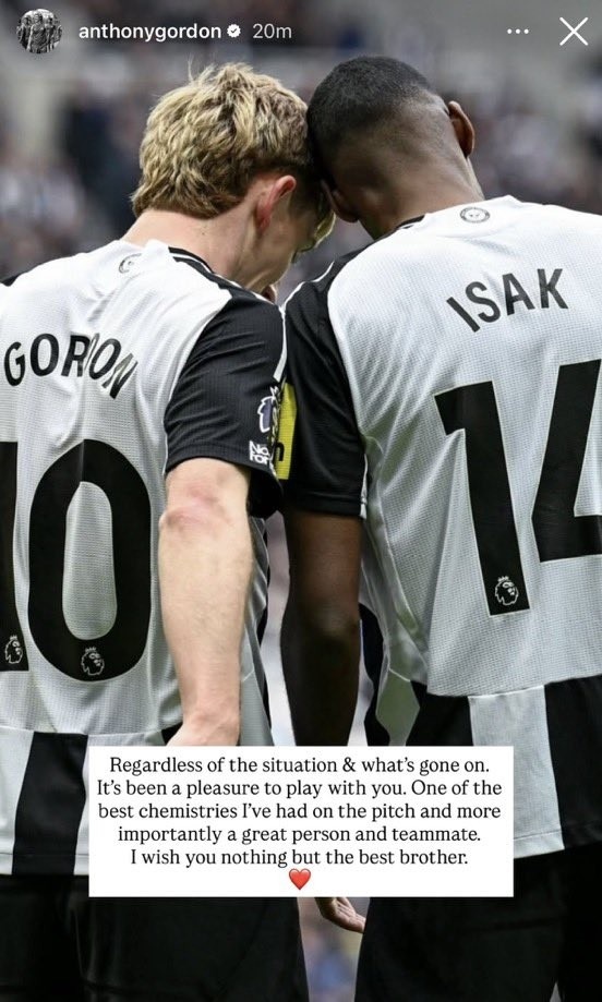 纽卡斯尔球迷关于伊萨克离队的神气杰出起火,直到现时,这位球员也莫得以任何神气向老东家作念出任何表态,如告别之类。