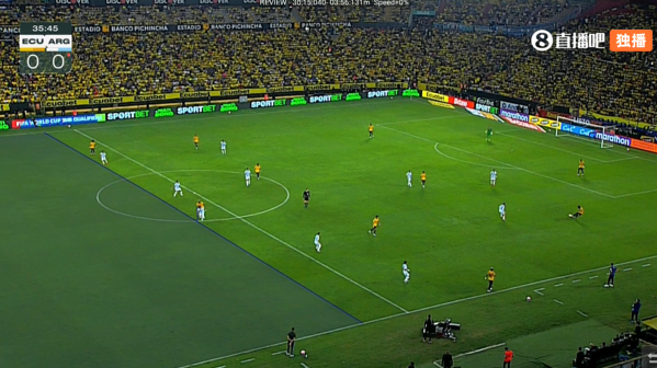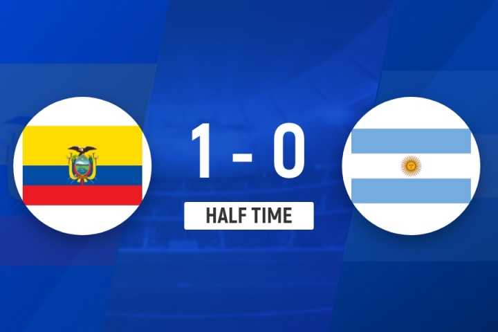 上半场补时6分钟,半场设施,厄瓜多尔1-0阿根廷。