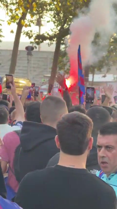 赛前,巴萨球迷在球场外蚁合,高喊短长巴黎的标语。