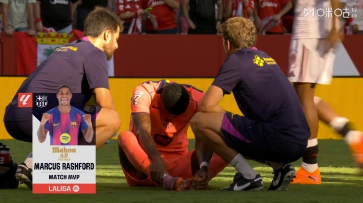 赛后转播镜头透露,本场比赛的全场最好给到为巴萨打进一球的拉什福德。