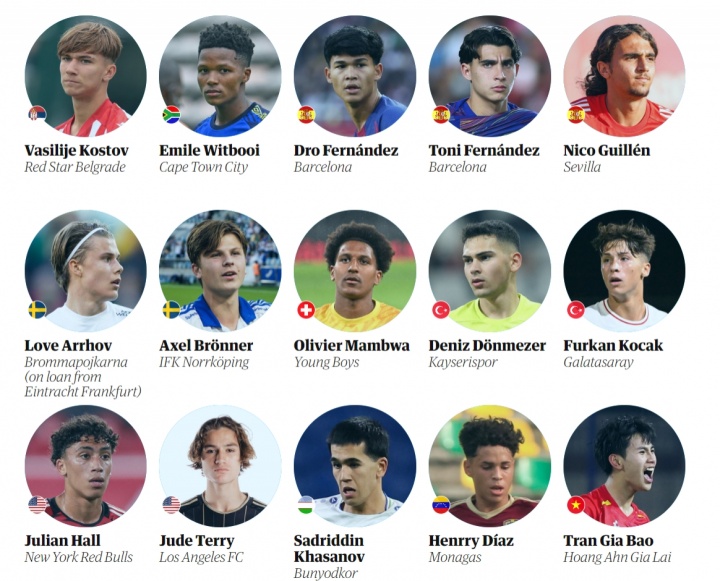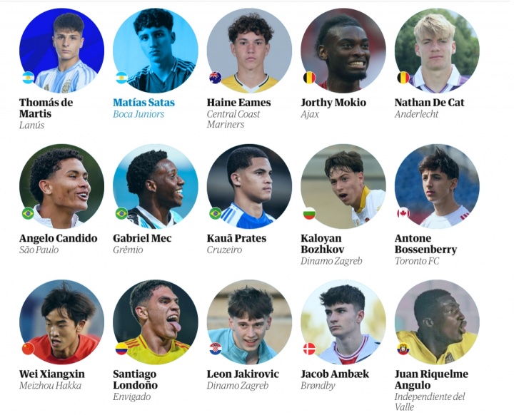 卫报评足坛08年出身60大新星完好名单(不分排行):