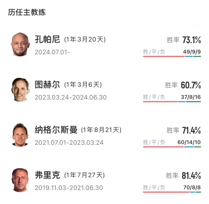 在两边续约后,孔帕尼成为自2010年范加尔以来,首位与拜仁续约的主栽种。再之前则要追想到2003年的希斯菲尔德。