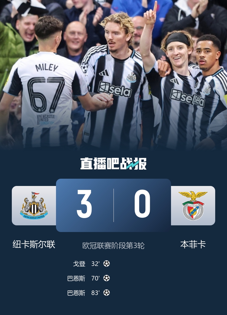 10月22日讯 欧冠联赛阶段第3轮首个比赛日领域,3场英超球队(阿森纳、曼城、纽卡)的欧冠比赛齐顺利拿下顺利且顺利零封敌手。