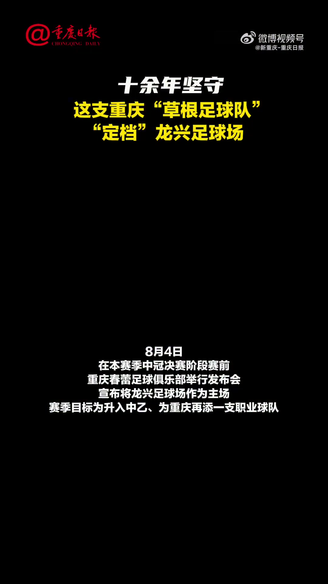 8月4日,在本赛季中冠决赛阶段赛前,重庆春蕾足球俱乐部举行发布会晓谕将龙兴足球场动作主场,赛季策画为升入中乙、为重庆再添一支作事球队。