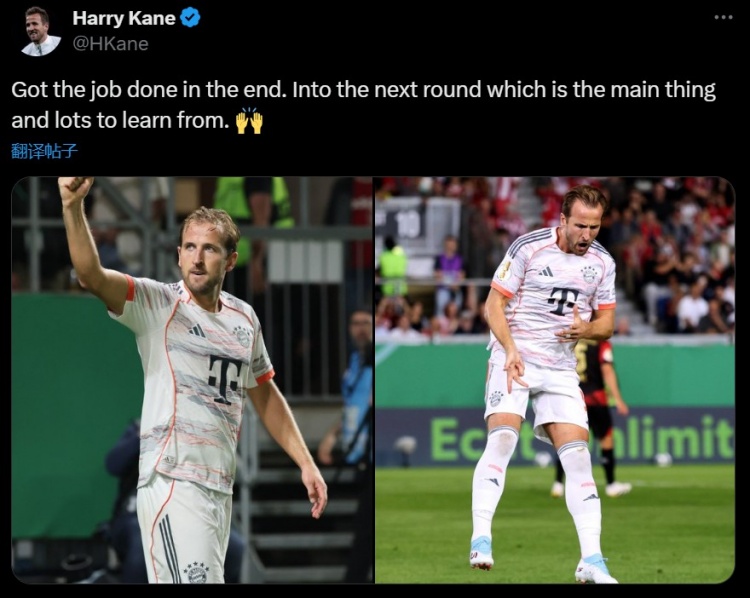 8月28日讯 在拜仁3-2打败韦恩,晋级德国杯第二轮后,凯恩更新了布置媒体。