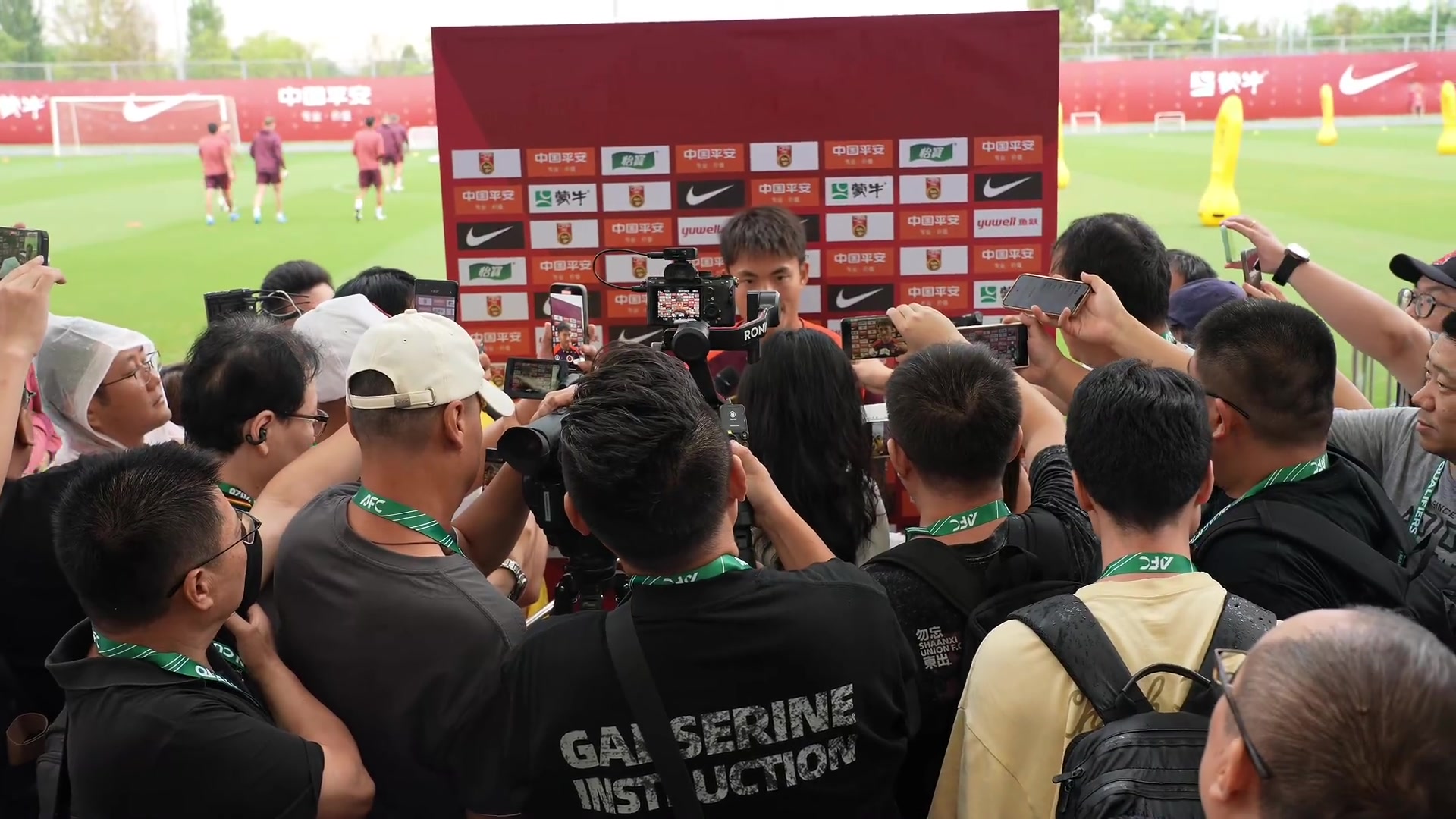 赛前一天检会直击,徐彬、李昊罗致媒体采访。