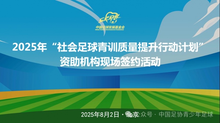 为贯彻落实寰宇足球职责会议精神,助力青训体系开采,2025年8月2日,中国足球发展基金会“社会足球青训质料提高步履盘算”资助机构现场签约步履在北京体育大学举办,共有来自寰宇28个省、自治区、直辖市的97家社会青训机构负责东谈主进入了这次步履。