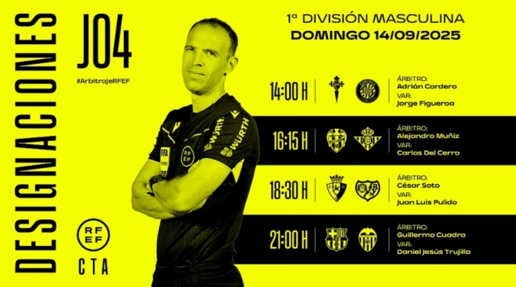 9月13日讯 当地技能周日(9月14日)进行的西甲第4轮四场比赛裁判如故细则,具体任命如下:
