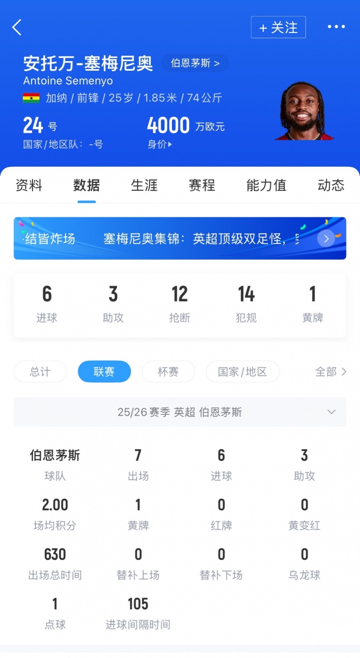 而伯恩茅斯方面觉得,现年25岁的塞梅尼奥如今至少值7500万镑,本赛季于今,他依然斩获6个联赛进球,并孝敬3次助攻。