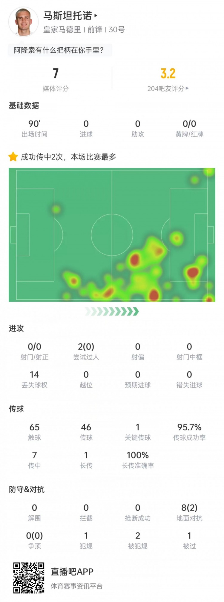 11月2日讯 西甲第11轮比赛,马斯坦托诺踢满全场,皇马主场4-0打败瓦伦西亚。