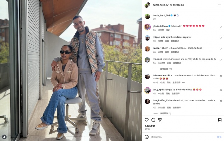 11月05日讯 亚马尔父亲、39岁的穆尼尔-纳斯拉维近日屡次在社媒晒出与23岁女友Khristina的合照,其中一条动态配上了“🖤💍”的情愫记号,激发测度。