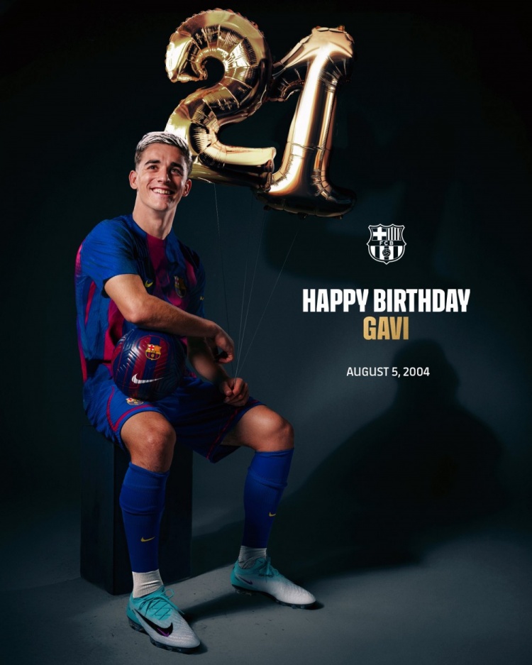 巴萨官方社媒晒出加维的诞辰海报,配文:“诞辰惬心,加维!”