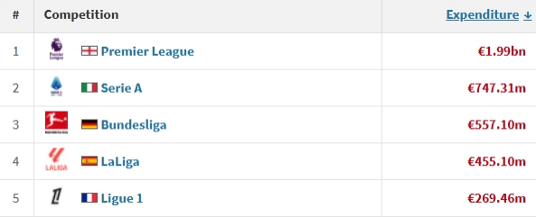 若是对比英超和德甲今夏转会窗的支拨不错发现,在英超转会窗支拨榜上排名第10的伯恩利还是消耗7395万欧,这个数字以致不错在德甲的支拨榜上排进前三。