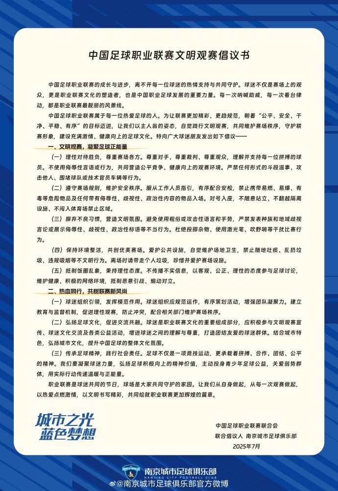 你的位置:英超直播 > 法甲 > 南京城市足球俱乐部时髦不雅赛倡议书