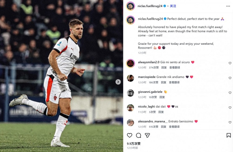 你的位置:英超直播 > 法甲 > 欧冠积分榜 菲尔克鲁格社媒追溯米兰处子秀:齐备的新年开局,很走时立即登场