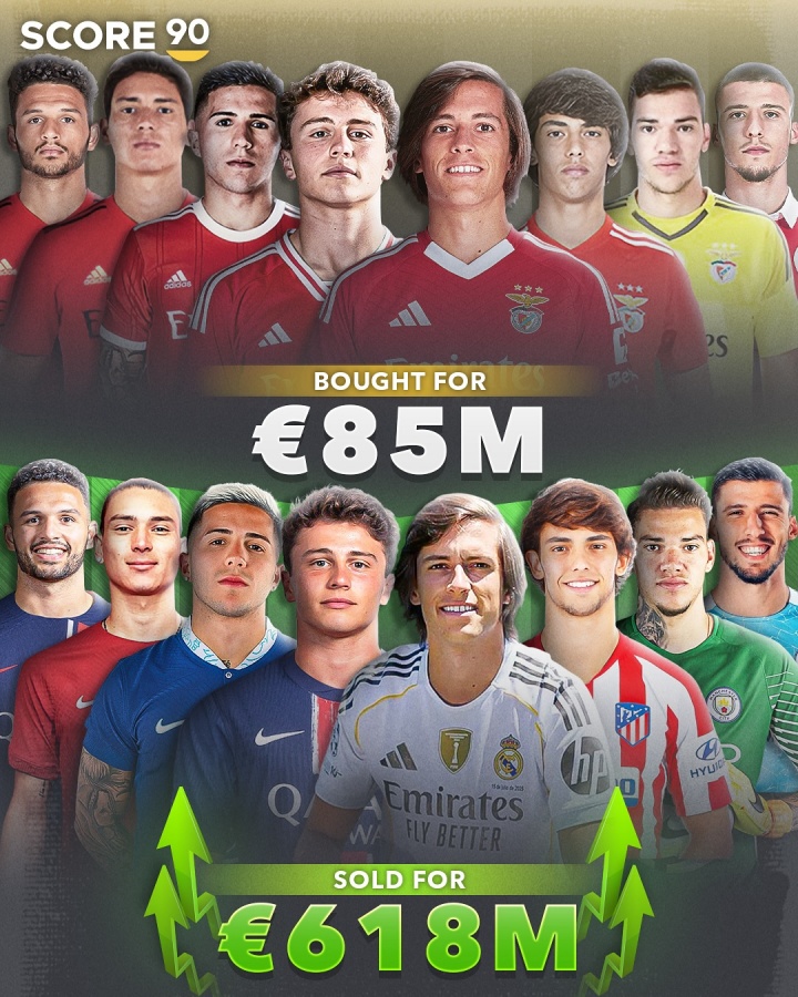 07月24日讯 英媒SCORE90统计了葡超三豪强的转会操作,列出了他们在队史转出售价较高的球员中,得回了若干利润。