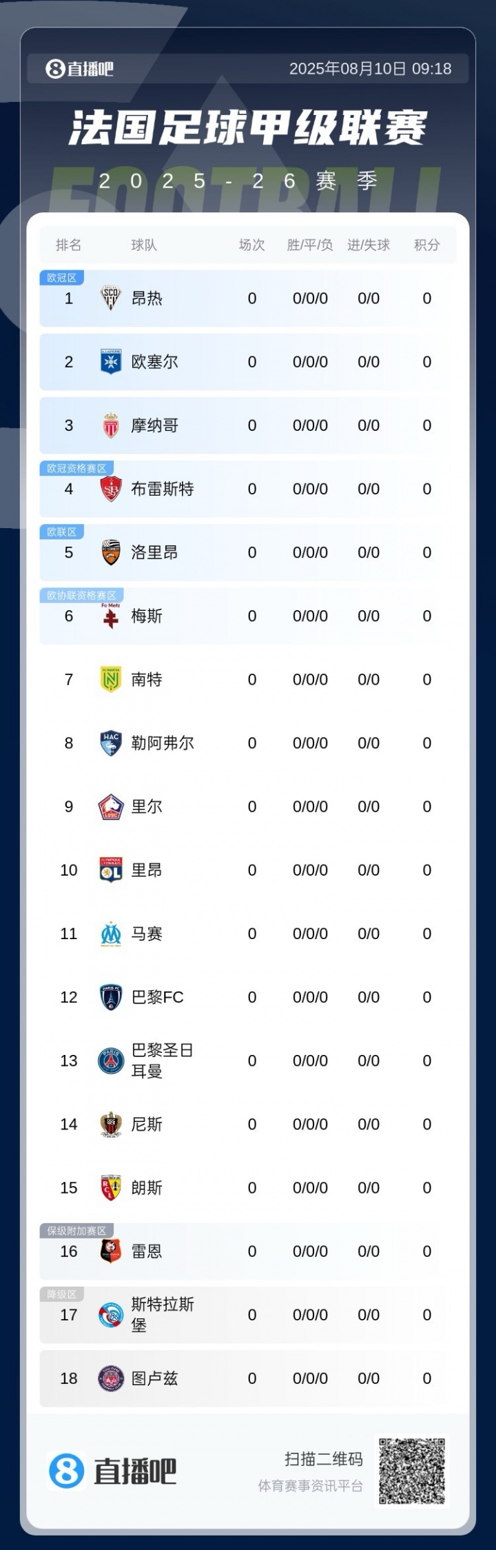 25/26赛季法甲18队