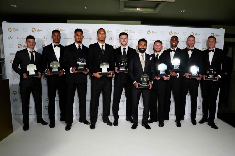 在2024-25赛季中,萨拉赫凭借帮助利物浦夺冠并打入29球的表现,第四次获得金靴奖,并荣膺PFA年度最佳球员。萨拉赫上赛季的18次助攻仅次于德布劳内和亨利,在英超历史上排名第三。这位埃及球星成为史上首位三次获得该奖项的球员,并与队友范迪克、赫拉芬贝赫和麦卡利斯特一同入选英超年度最佳阵容。萨拉赫从利物浦传奇射手伊恩-拉什手中接过奖杯。33岁的他在评选中击败了麦卡利斯特、B费、伊萨克、帕尔默和赖斯。