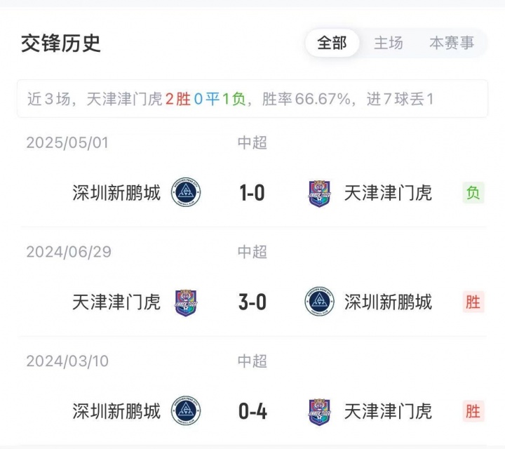 积分榜方面津门虎10胜7平7负,积37分排在联赛第7;深圳则是6胜2平16负,积20分排在倒数第四,高降级区3分。