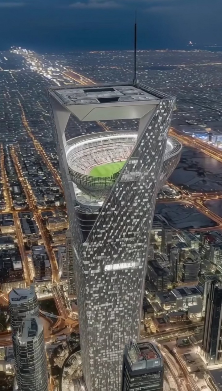 这座球场距离地面约350米的高空,预计将在2032年左右完工,并将承办2034年世界杯的比赛。
