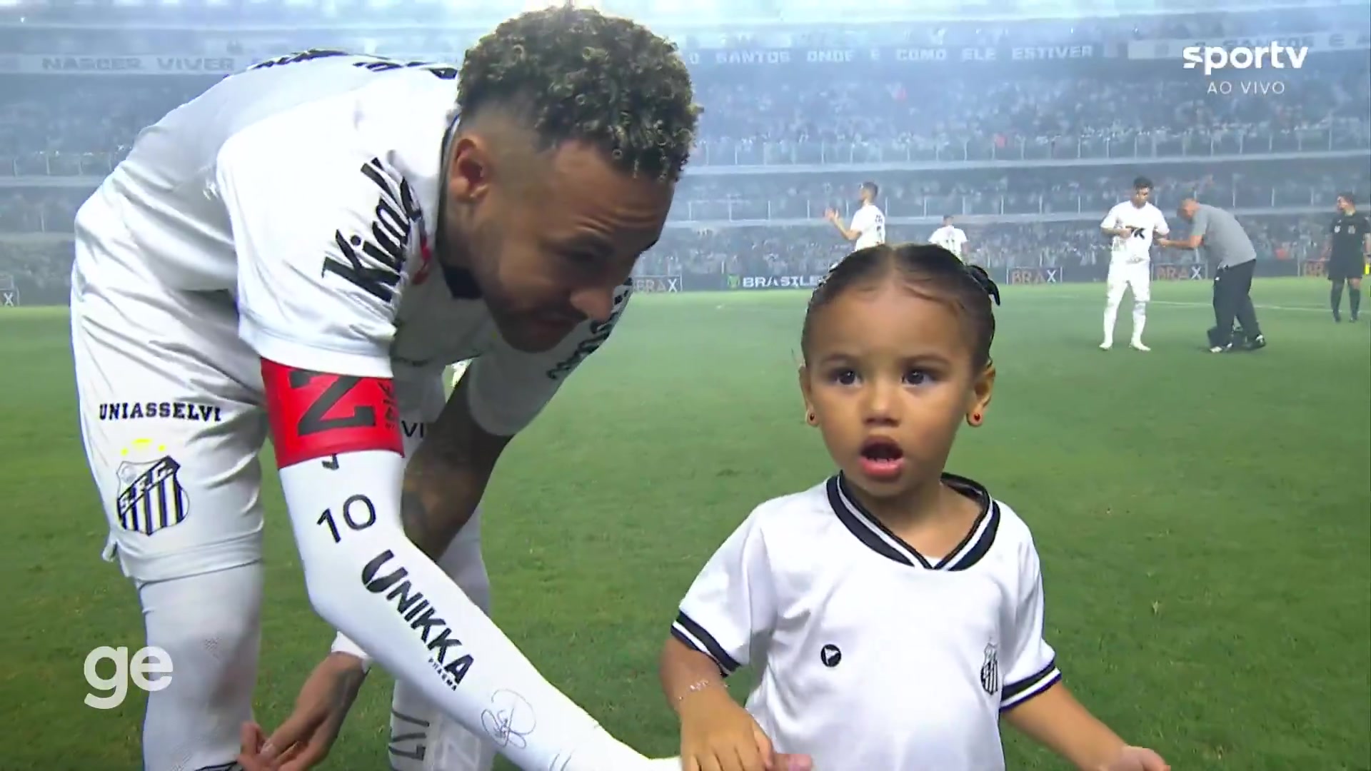 11月16日讯 北京时间今天上午,桑托斯在巴甲第13轮补赛中主场对阵帕尔梅拉斯。此役内马尔为桑托斯首发出战,赛前他带着女儿玛维入场。