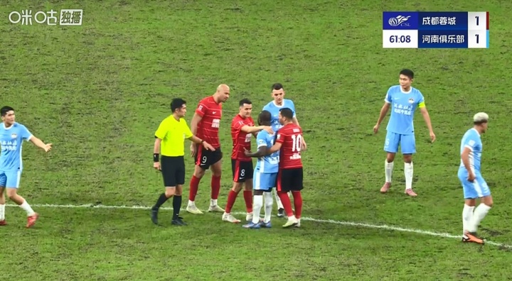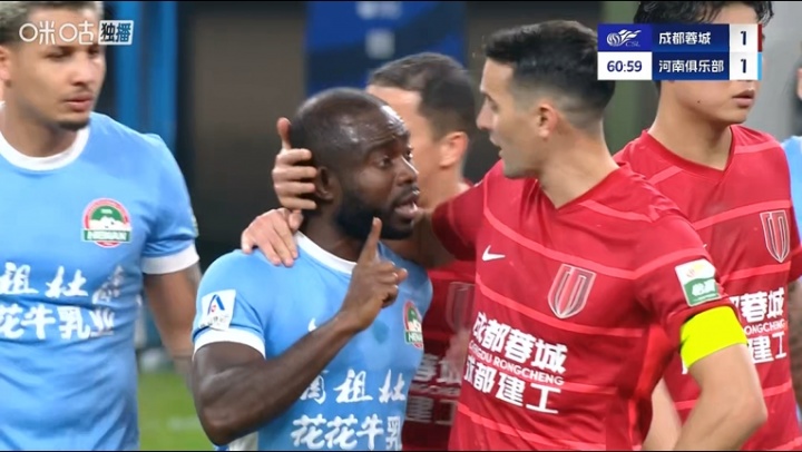 中超第29轮,河南2-1客胜蓉城,比赛下半场,阿奇姆彭一度情绪激动导致比赛中断。赛后有视频显示,现场球迷在比赛中朝阿奇姆彭学猴子叫,辱骂“黑鬼”+竖中指。