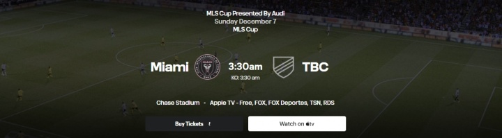 总决赛将于北京时间12月7日凌晨3点30分在迈阿密国际主场进行。