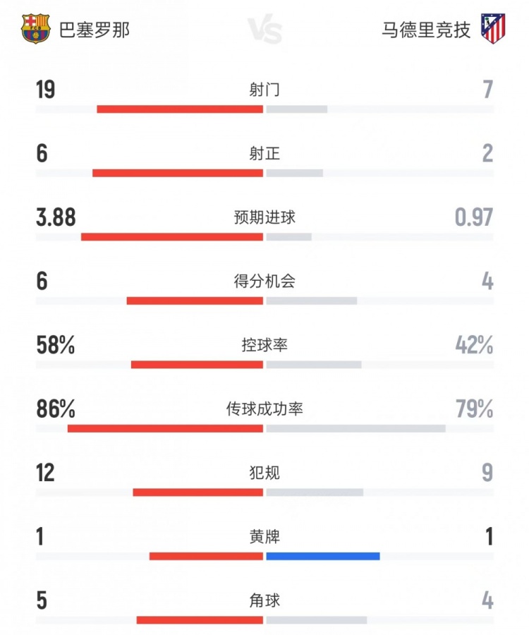 巴萨vs马竞全场数据: