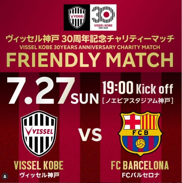 在官方通告中,神户胜利船表示:我们很高兴地宣布,经过与所有相关方的仔细讨论,原定于2025年7月27日星期日举行的同巴塞罗那的友谊赛将如期举行。