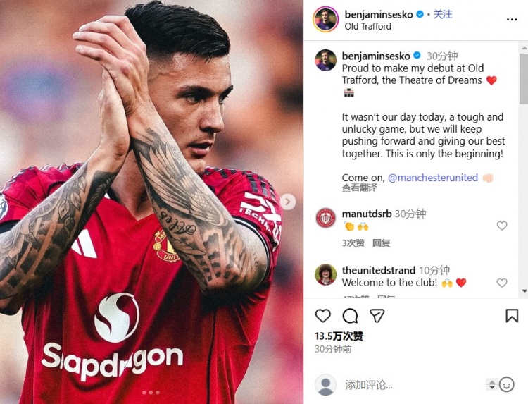 在酬酢媒体上,塞斯科写说念:很荣幸在“梦戏院”老特拉福德献艺首秀!这是不属于咱们的一天,比赛很吃力,咱们也不荣幸,但咱们会赓续致力于,全部奉献出最佳的线路。这仅仅一切的运转!加油曼联!