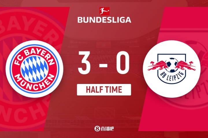 上半场伤停补时4分钟,半场箝制,拜仁暂3-0莱比锡。