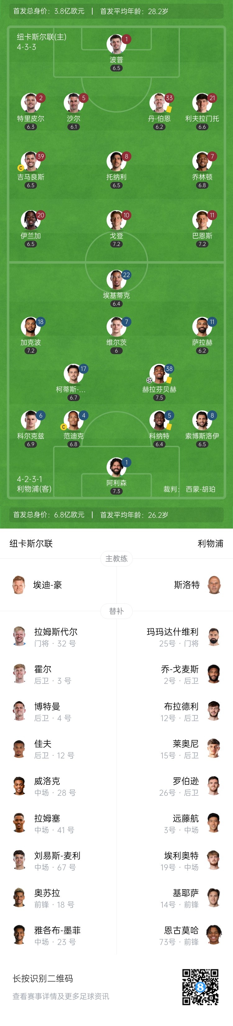 第29分钟,纽卡右路打破下底传中,小禁区前戈登包抄射门,被侵略了一下,阿利森将球扑住↓