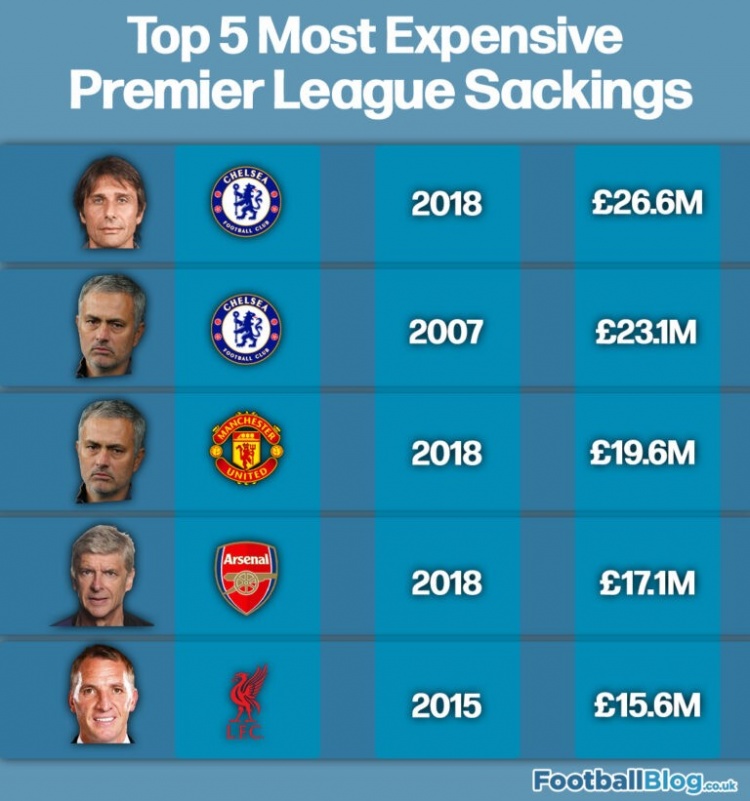 在扫数辞退用度跳动1000万英镑的18个案例中,有8个由切尔西制造,这进一步突显了他们在训导席变动上的宏大插足。