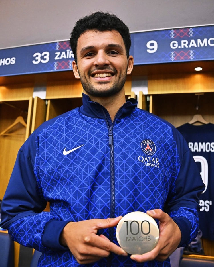 此役是贡萨洛-拉莫斯为巴黎出战的第100场比赛,他蓄意打进38球,助攻8次,赛后俱乐部向他颁发了百场追到徽章。