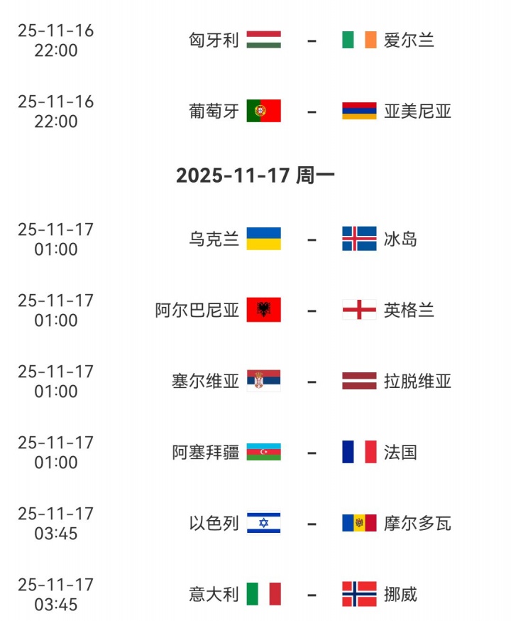 11月16日讯 北京时期11月16日凌晨的宇宙杯预选赛欧洲区比赛均已宣告为止,未产生新的纵贯2026年好意思加墨宇宙杯球队。