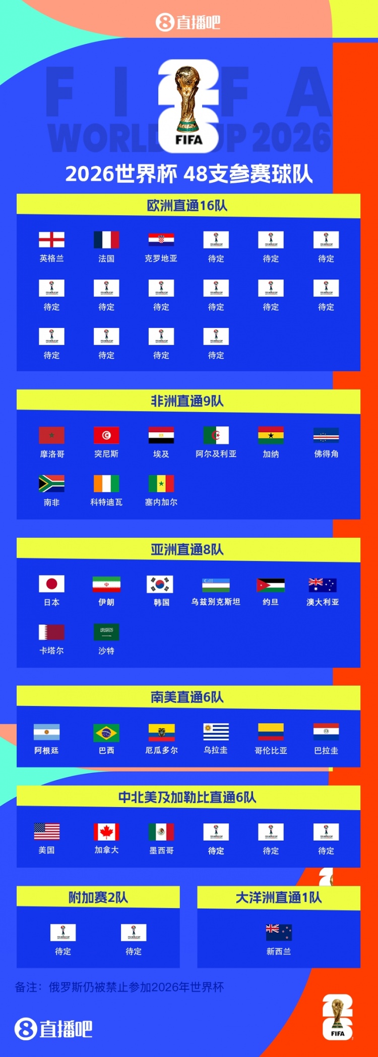 好意思国、墨西哥、加拿大、日本、新西兰、伊朗、阿根廷、乌兹别克斯坦、韩国、约旦、澳大利亚、巴西、厄瓜多尔、乌拉圭、巴拉圭、哥伦比亚、摩洛哥、突尼斯、埃及、阿尔及利亚、加纳、佛得角、南非、卡塔尔、英格兰、沙特、科特迪瓦、塞内加尔、法国、克罗地亚