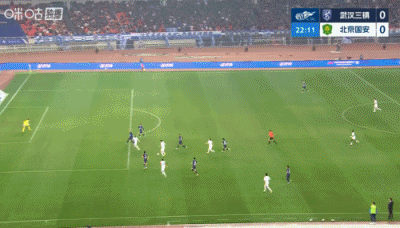 第45分钟,王刚右路端线 位置无人盯防的传中,危险区域 内法比奥头槌破门!北京国安1-0领跑 武汉三镇↓