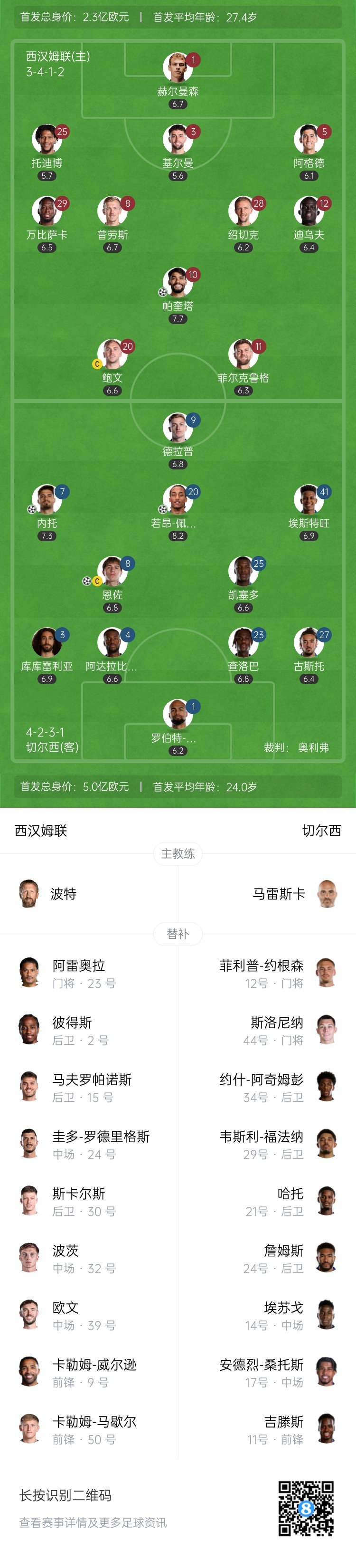 第23分钟,查洛巴抢断帕奎塔,若昂-佩德罗传中,后点内托包抄破门!切尔西2-1反超西汉姆联↓