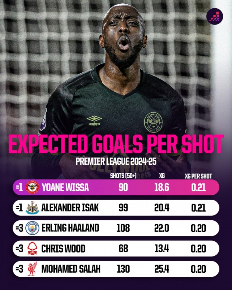 每次射门预测进球数,伊萨克跟维萨名顺序一