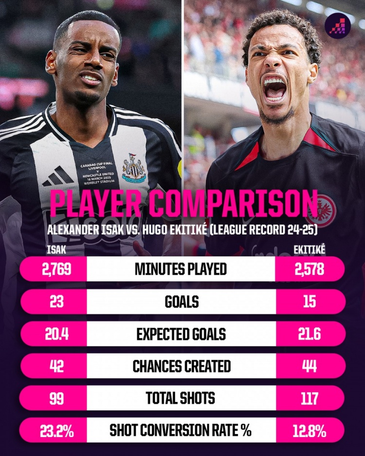 在纽卡,伊萨克主打的唯一中锋位置,莫得其他谜底的,到新队后,斯洛特会给他安排到肖似责任这没问题。可关键问题是他们也引入了埃基蒂克这名中锋球员,且他在赛季开打后景色很好,无缺惩处我方被批的、射门实力一般问题,这样来看,哥俩似乎有点重迭。