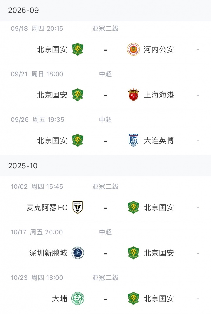 25/26赛季亚冠二级联赛小组赛抽签,北京国安为东亚区的一档球队,同组敌手如下。