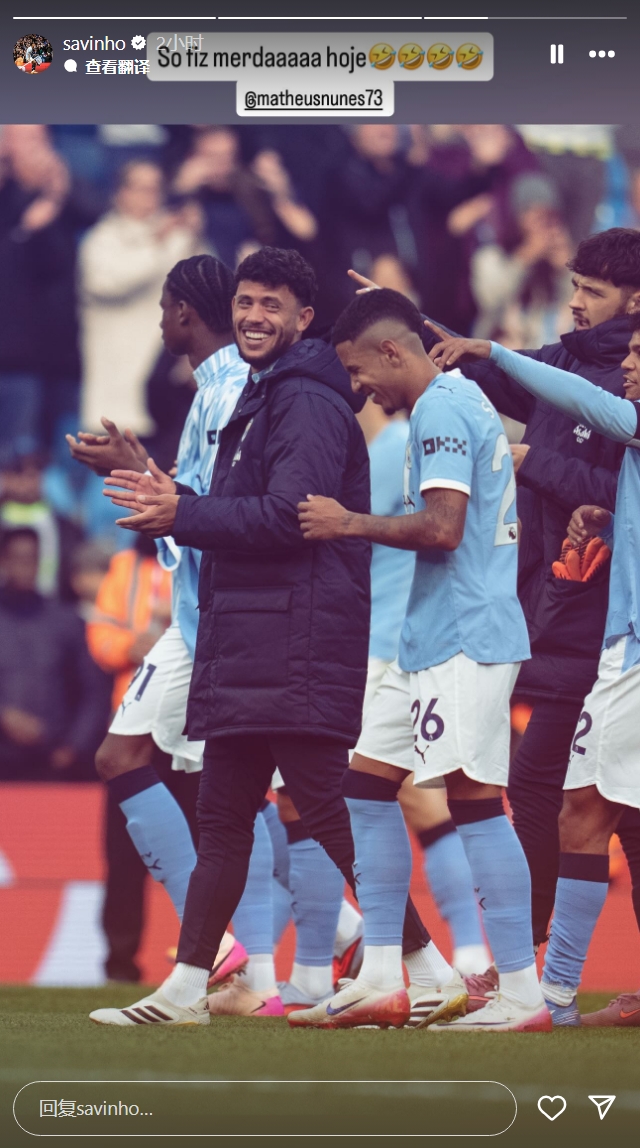 此役萨维尼奥为曼城替补出场,但他对我方在场上的推崇似乎并不舒心。