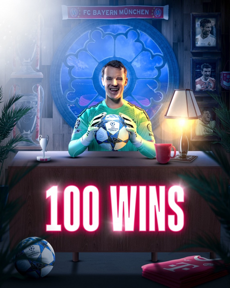 凭据拜仁官方的数据统计,诺伊尔成为欧冠历史上第四位收货100场见效的球员,在他之前的是C罗、托马斯-穆勒和卡西利亚斯。