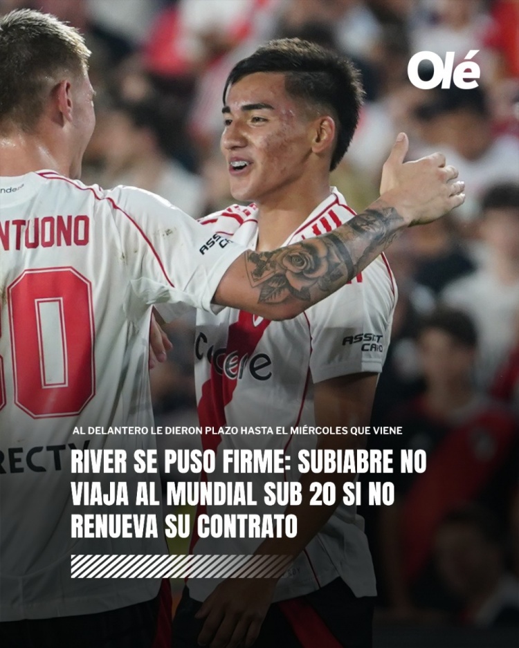 9月19日讯 据阿根廷媒体《奥莱报》报谈,河床要求18岁边锋苏比亚布雷先签下续约条约,不然不会放他插足U20全国杯。