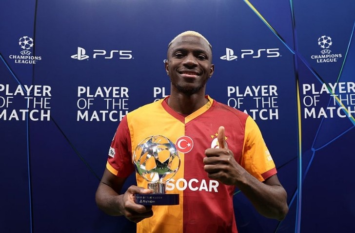本场比赛奥斯梅恩点射破门,赛后他也当选欧冠官方评比出的本场最好球员。