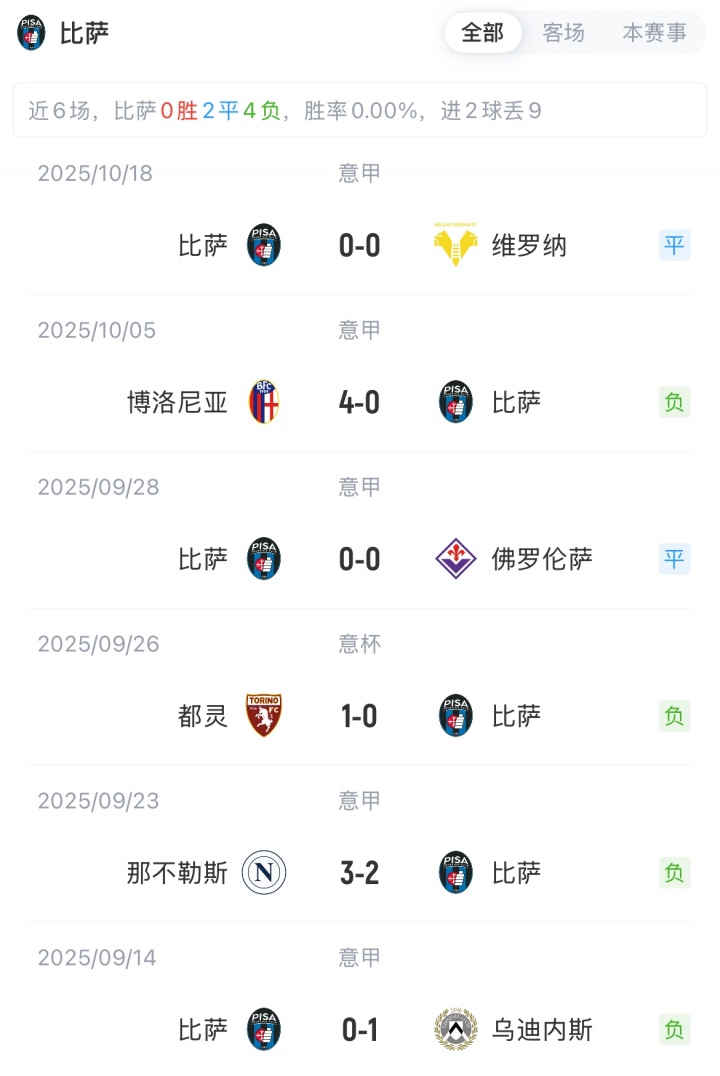 比萨首发:1-森帕、4-卡拉乔洛、39-阿尔比奥尔、5-卡内斯特雷利、15-伊德里萨·图雷、14-阿金桑米罗、20-埃比舍尔、94-邦范蒂、10-特拉莫尼、9-迈斯特、18-恩佐拉