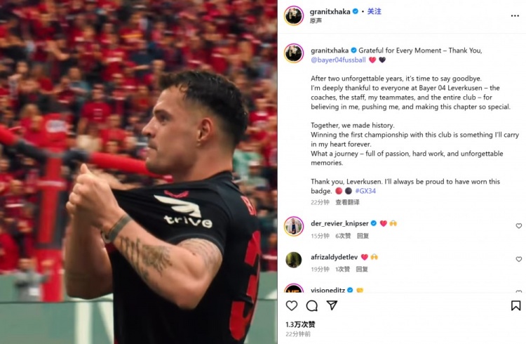 感德每一刻——谢谢你,@勒沃库森 ❤️🖤