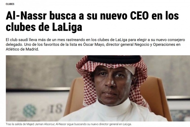 Majed Jaman Alsorour离任后,利雅得得胜一直在寻找合适的接替东谈主选,马约是备受喜欢的候选者之一。马约在西甲定约中证实出色,他通过后生才俊禁受参预西甲定约,并于2017年底进步为国外发展总监,认真生意和品牌引申使命。2021年,他成为特巴斯的给力助手,并在与CVC基金的历史性合同中证实了要津作用,这为西甲俱乐部共注入了近20亿欧元的资金。